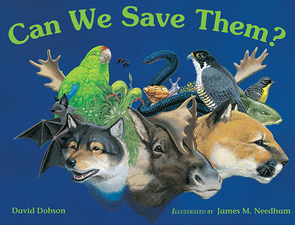 This introduction to endangered species spotlights a dozen North American animals and wildflowers that are bordering on extinction. The well-organized text keeps readers focused on individual species by repeatedly asking the question, "Can we save the...?" The full-color, double-spread format works well: the text on the verso gives facts about an animal, its habitat, and reasons it is disappearing, while the recto describes ways in which people are working to protect the species and what youngsters can do to help them. A wide cross section of climates and habitats is presented, as is a variety in species including insects, reptiles, birds, and mammals. One double-page spread is devoted to wildflowers. The colorful illustrations reflect natural habitats and enhance the presentation without overpowering it. Dobson's writing is generally clear and factual although he occasionally digresses with statements such as "Homo sapiens are kind of funny looking" and that wildflowers "all share one thing - they have silly-sounding names." An additional choice for youngsters looking to expand their understanding of the interrelatedness of all living things.